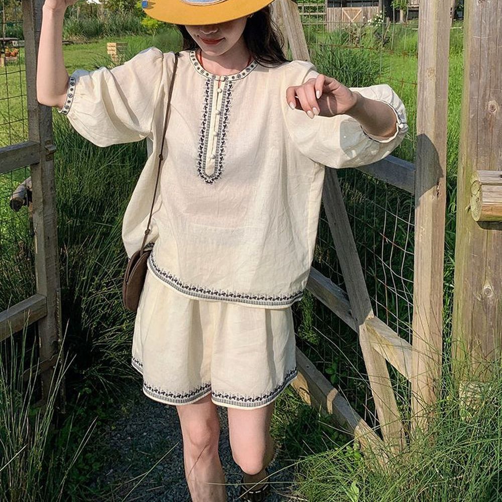 Bohemian Embroidery Cotton And Linen Suit Women's Summer Retro Suit