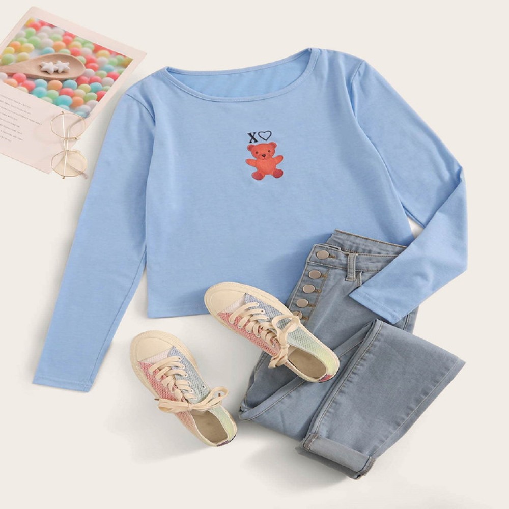Hot Style Jacket Cute Cartoon Printing Long-Sleeved T-Shirt Women