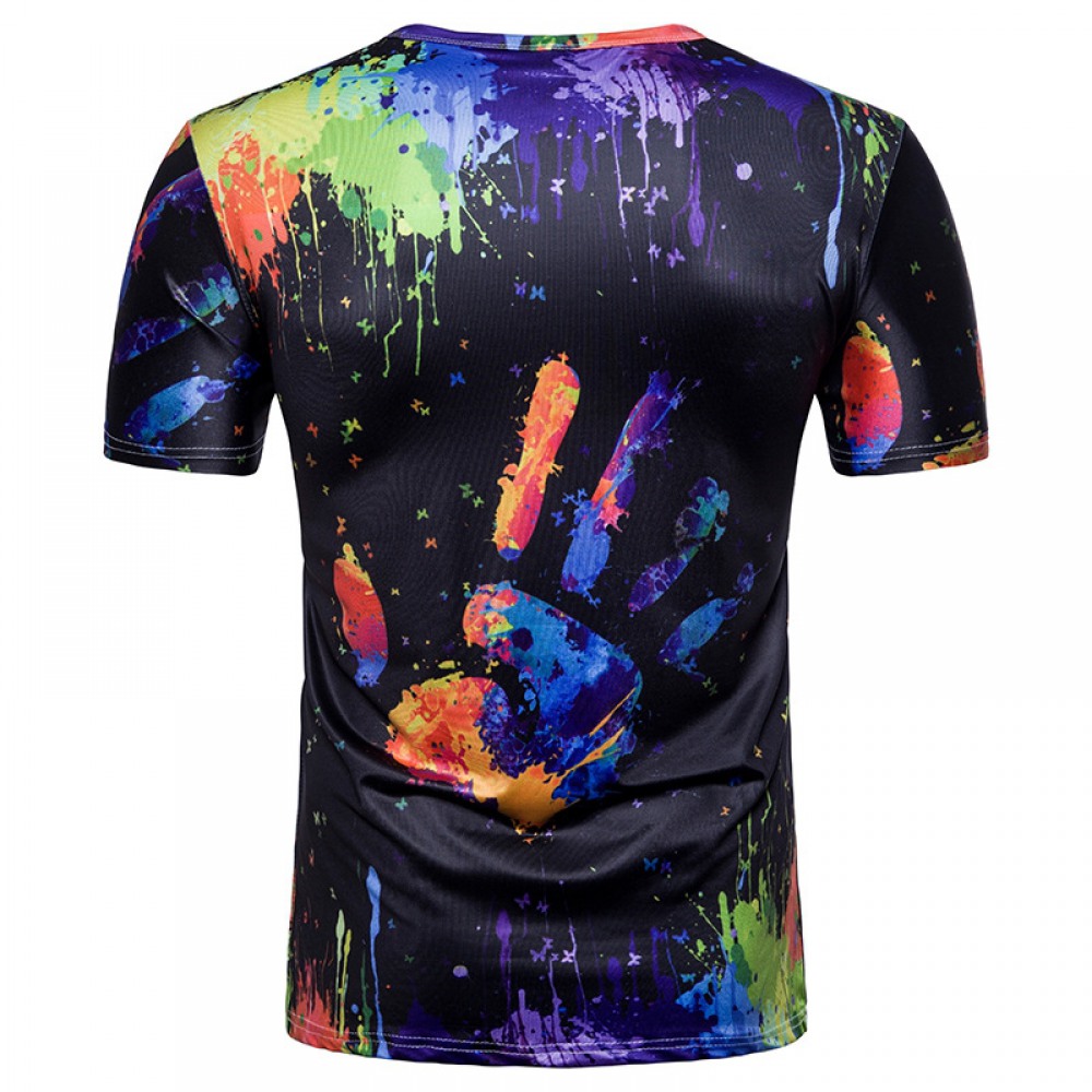 Men's 3D Shirt Splash Ink Printing T-Shirt Palm Printing Graffiti T-Shirt