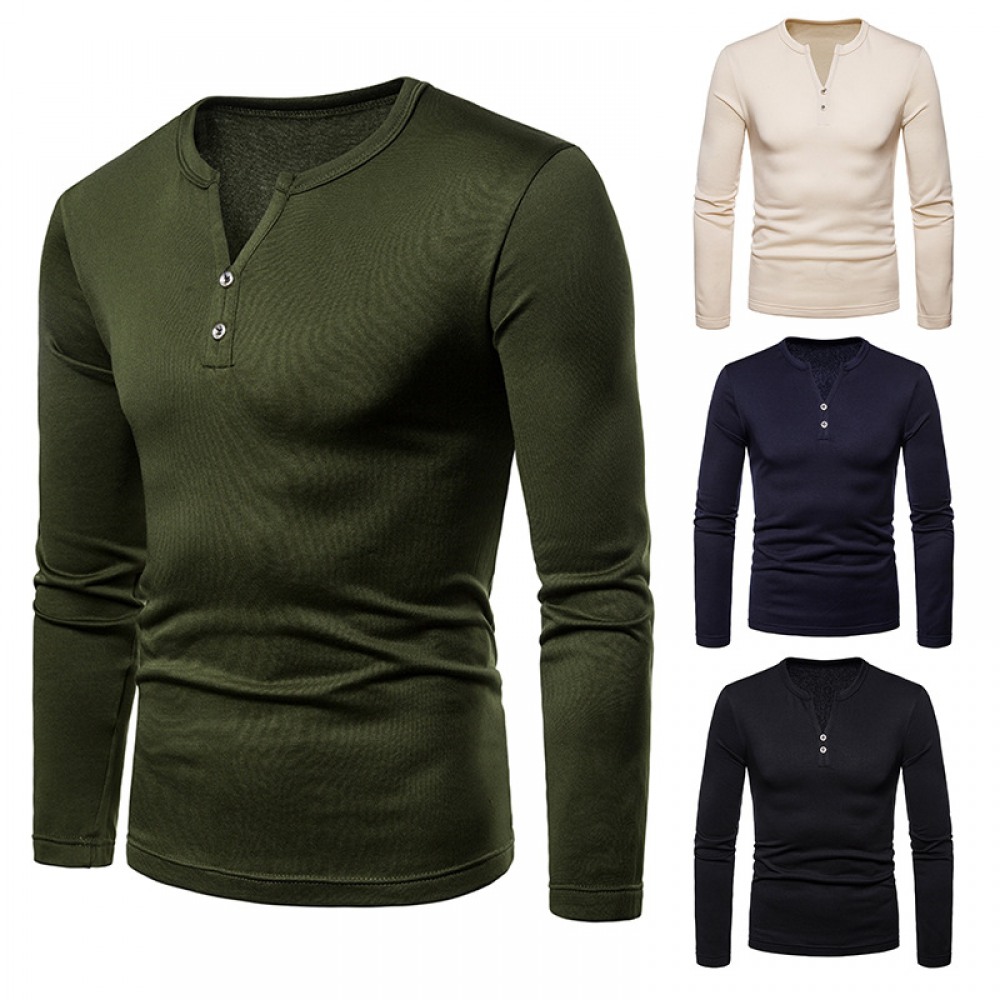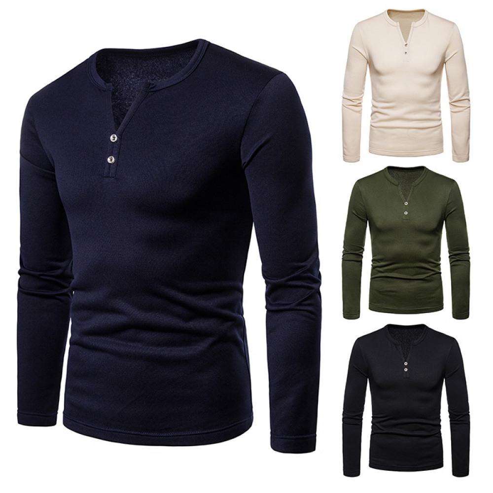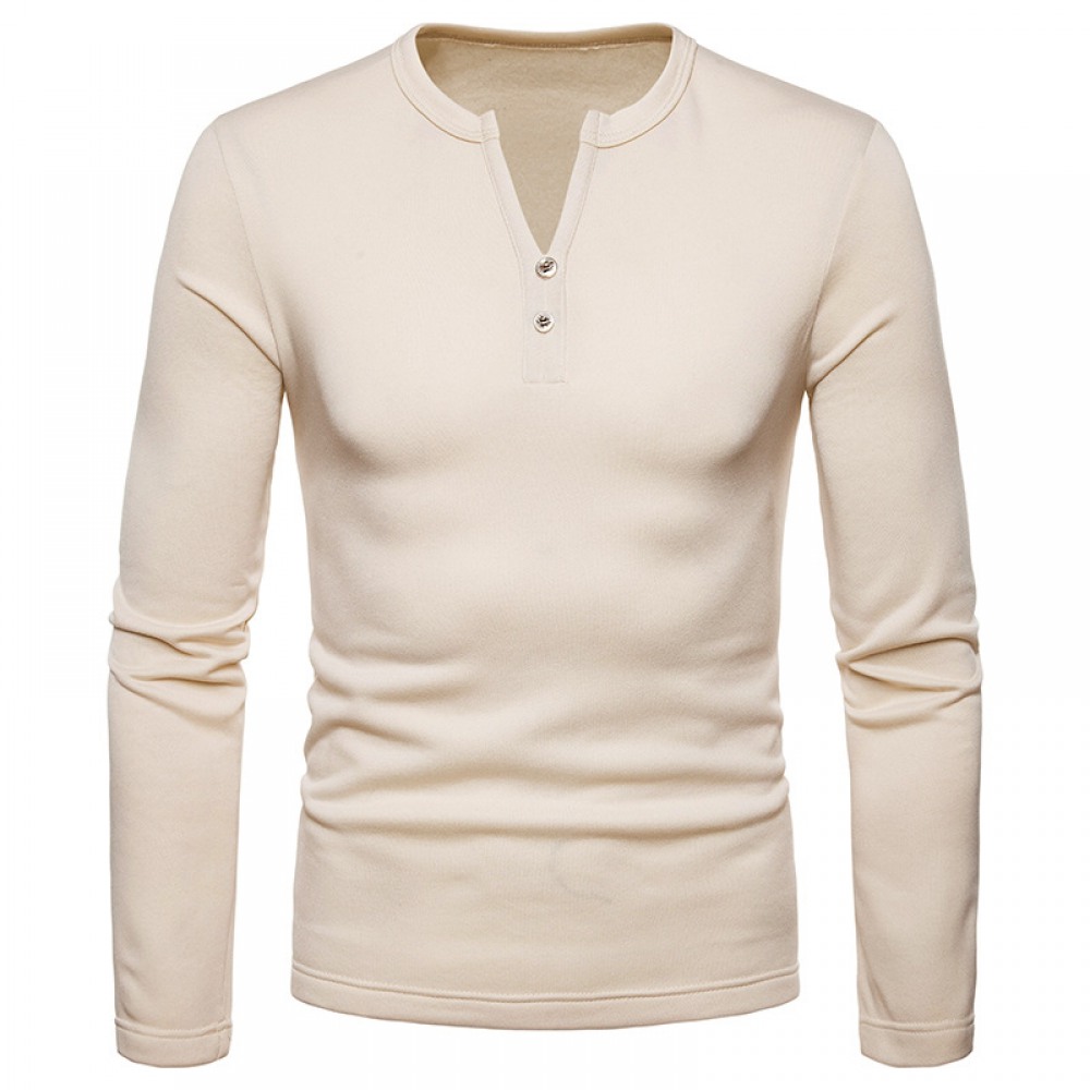 Men's Plus Size Plus Velvet Warm Henley Collar Long-Sleeved T-Shirt Bottoming Shirt