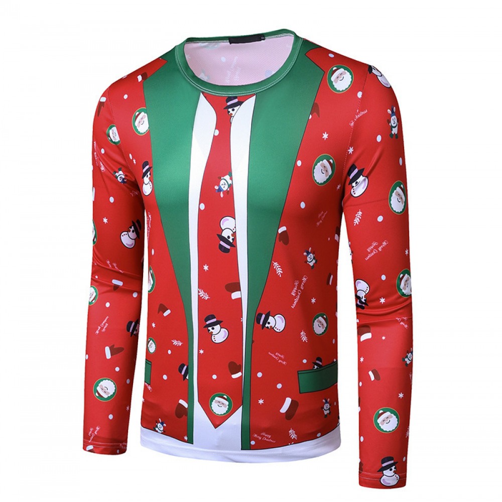 New 3D Personality Printing Fashion Men's Christmas Long Sleeve T-Shirt