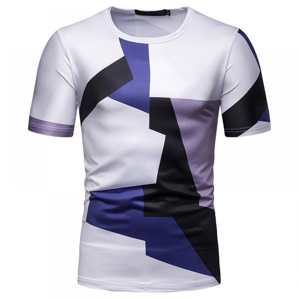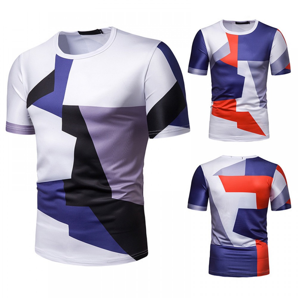 New Summer Men's Color Matching Print Short-Sleeved T-Shirt