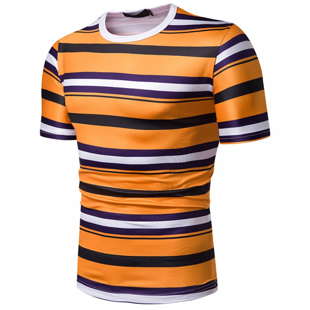 New Summer Men's Short-Sleeved T-Shirt Mens Contrast Striped Slim-Fit T-Shirt