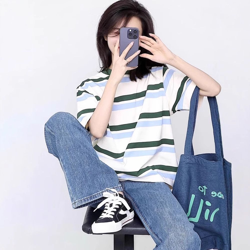Retro Straight Shoulder Short Sleeve T-Shirt Women's Summer Slim Top