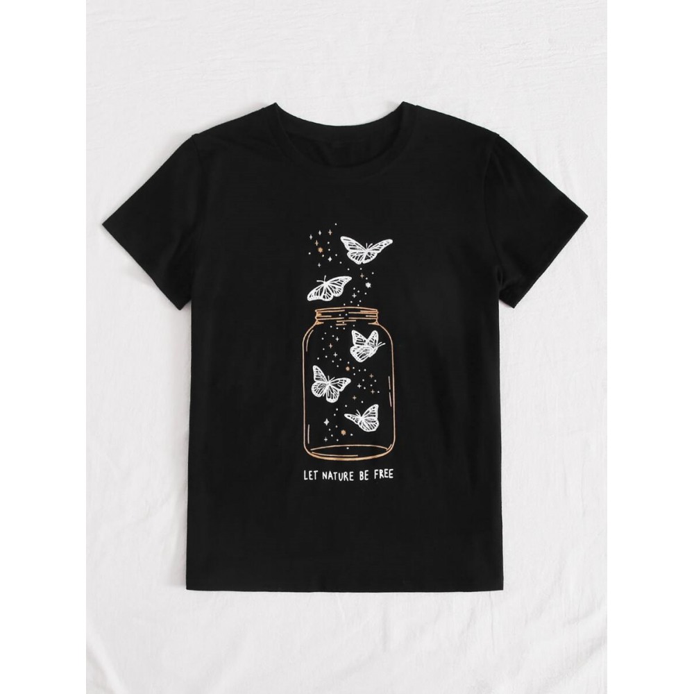 Casual Trendy T-Shirt Women's Plus Size Sun Flower Letter Printing T-Shirt