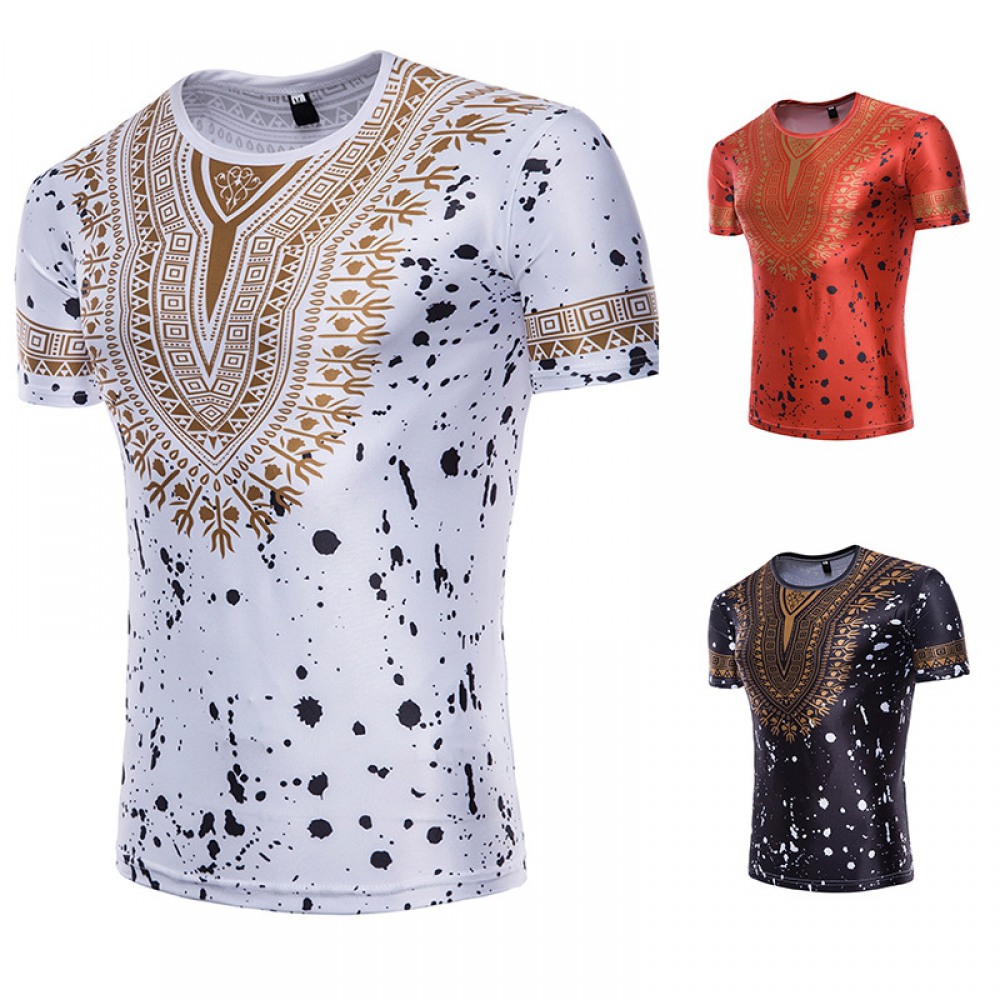 Fashion Male Creative Ethnic Style Floral 3D Printing D Short Sleeve T-Shirt