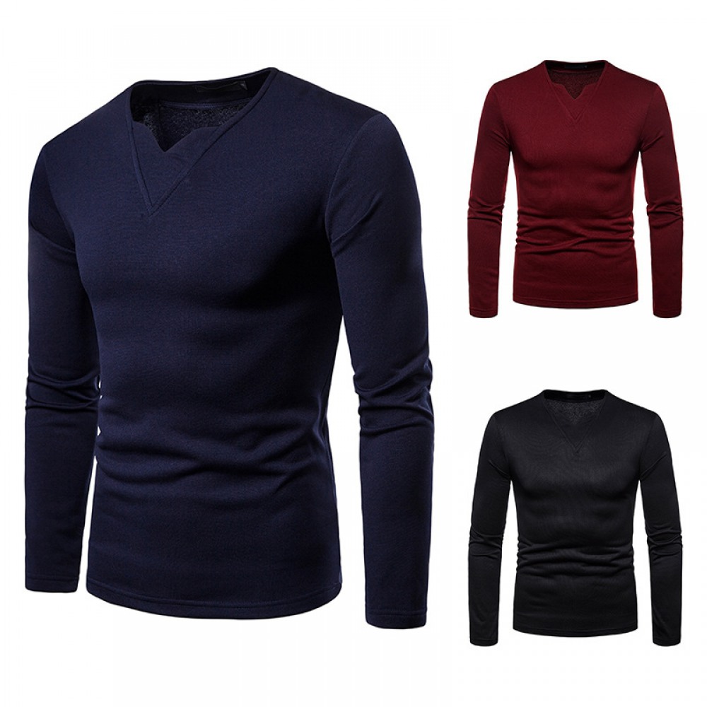 New Men's Diamond Velvet V-Neck Multicolor Long Sleeve Slim T-Shirt