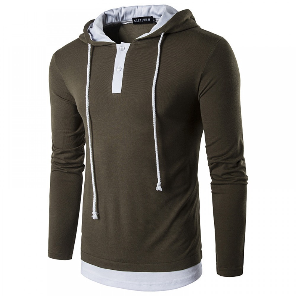 New Men's Fashion Street High Street Style Hooded Drawstring Long-Sleeved T-Shirt