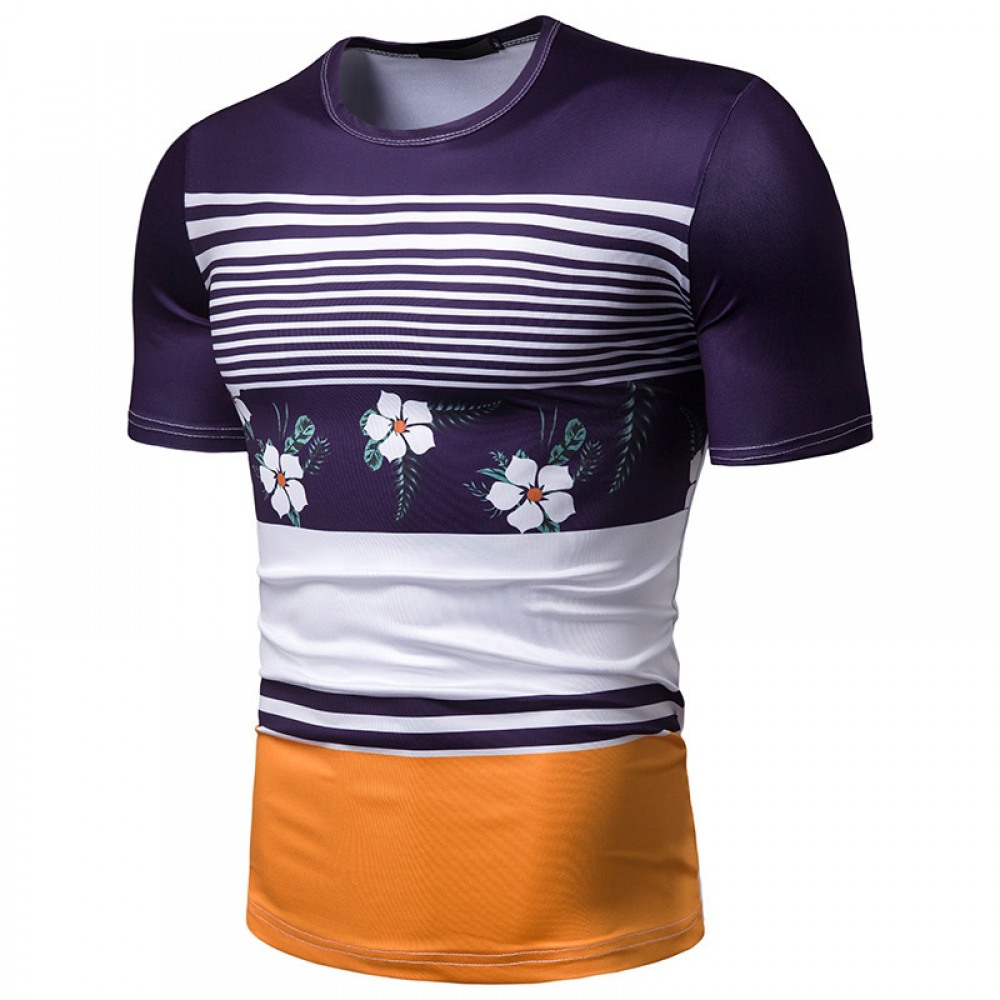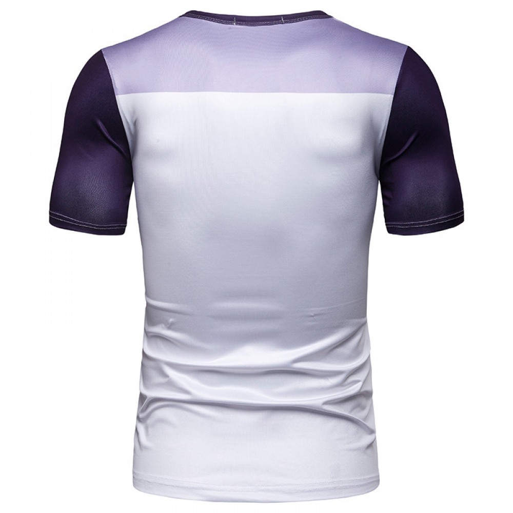 New Summer Men's Short-Sleeved T-Shirt Mens Contrast Striped Slim Casual T-Shirt