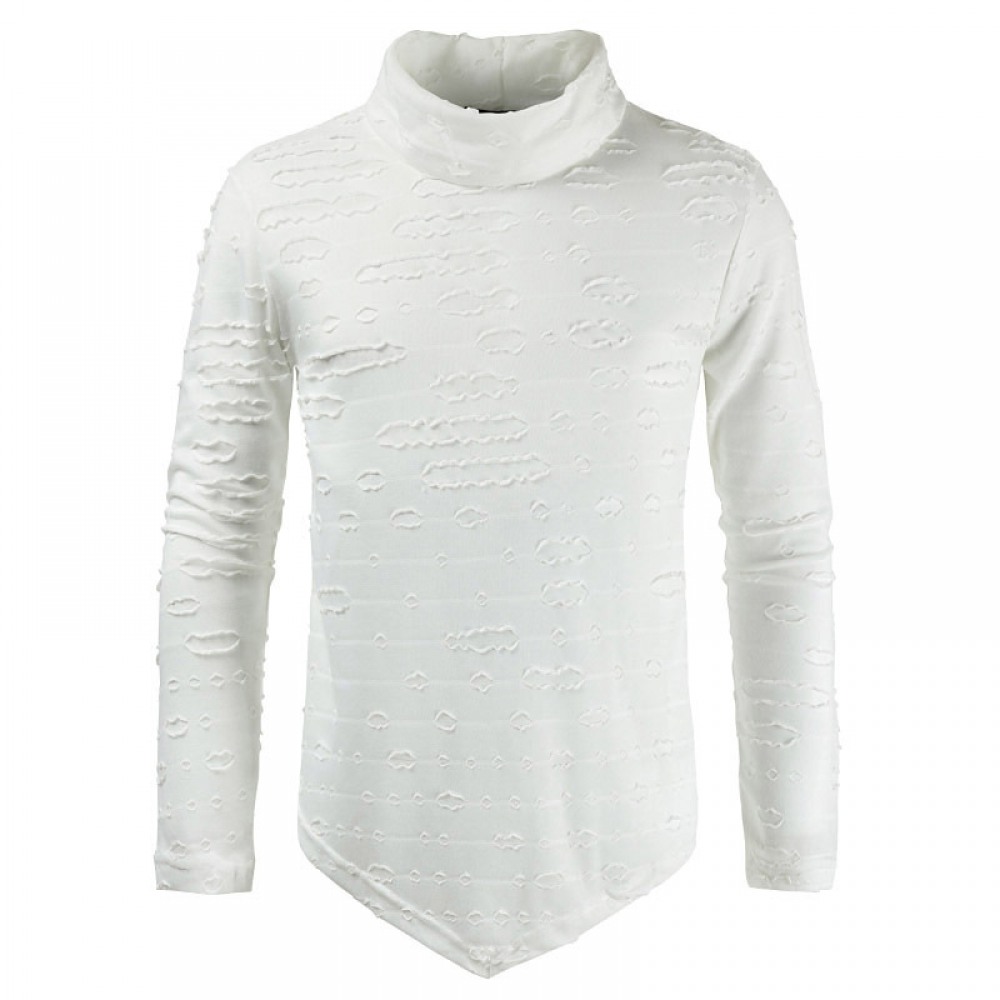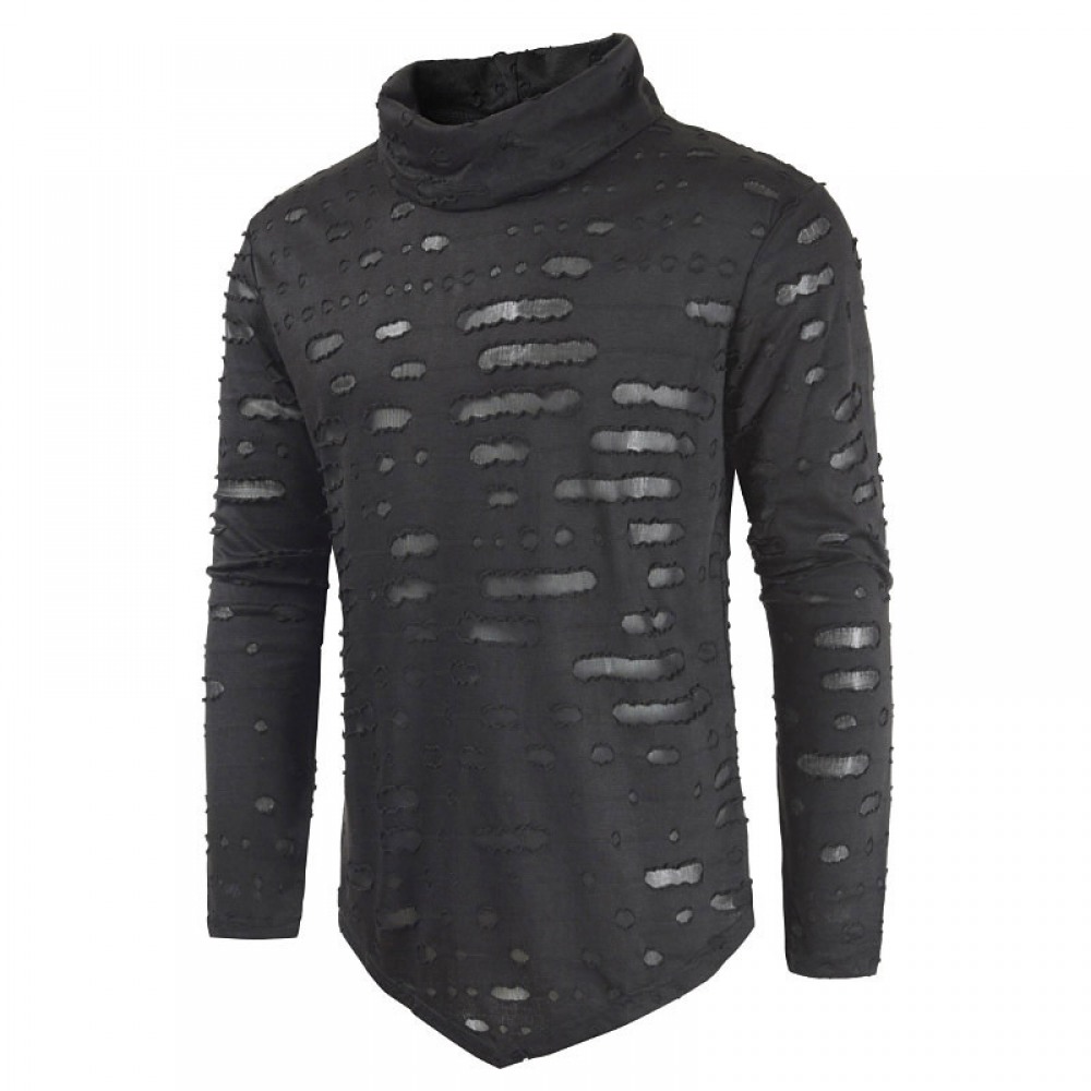 Personality Pile Collar Hip Hop Hole Inverted Triangle Dress Men's Casual Long-Sleeved T-Shirt